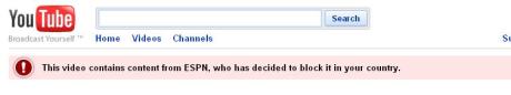 Writing pseudo code for other peoples projects is fun!  In all honesty, this little hiccup was a total block on my regular Youtube routine of watching hockey fights and make-up tutorial videos body building tutorial videos.  It also exposed me to the fact that they are allowing the users (and presumably ESPN is a partner) to put privacy controls on their videos by geo. location.  Why ESPN wouldn’t want Canadians to watch their videos is beyond me.  Minor changes in a database select statement, attention to detail and being super-sensitive when using restricted content, I live for these little details.